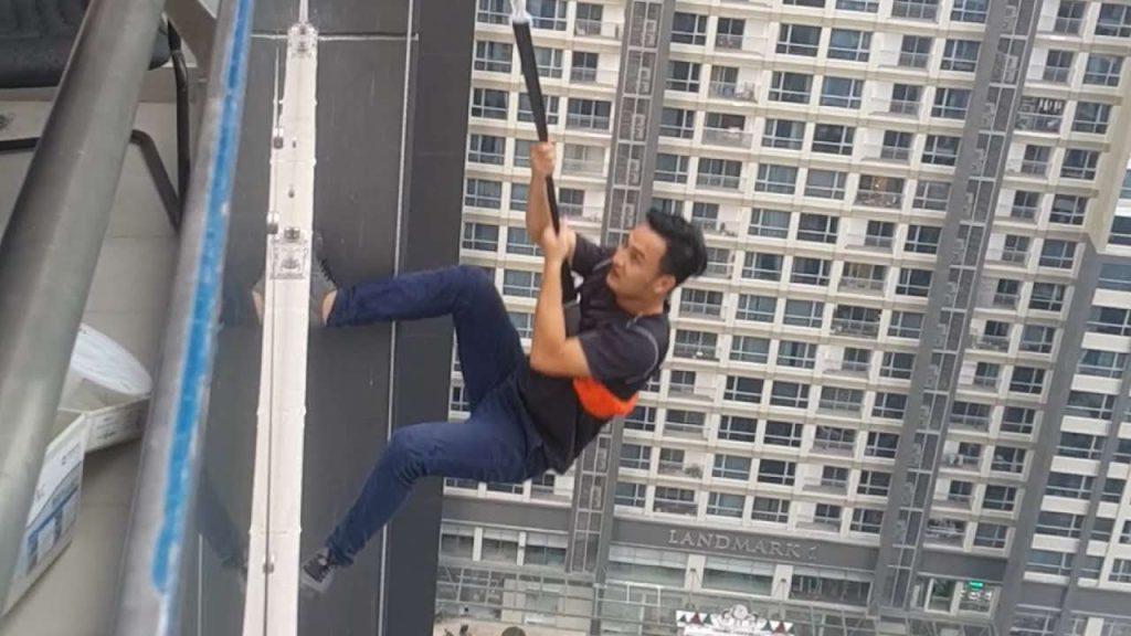 Giữ chắc dây, từ từ trượt xuống theo hướng thẳng đứng.